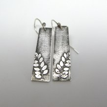 Recycled Sterling Silver Leaf Pattern Rectangle Earrings