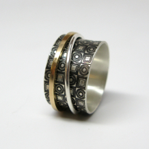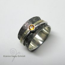 Water Pattern Spinner Ring with Stone and 10k Gold Spinner