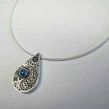 Recycled Sterling Silver Paisley Teardrop Necklace with Denim Lapis Lazuli